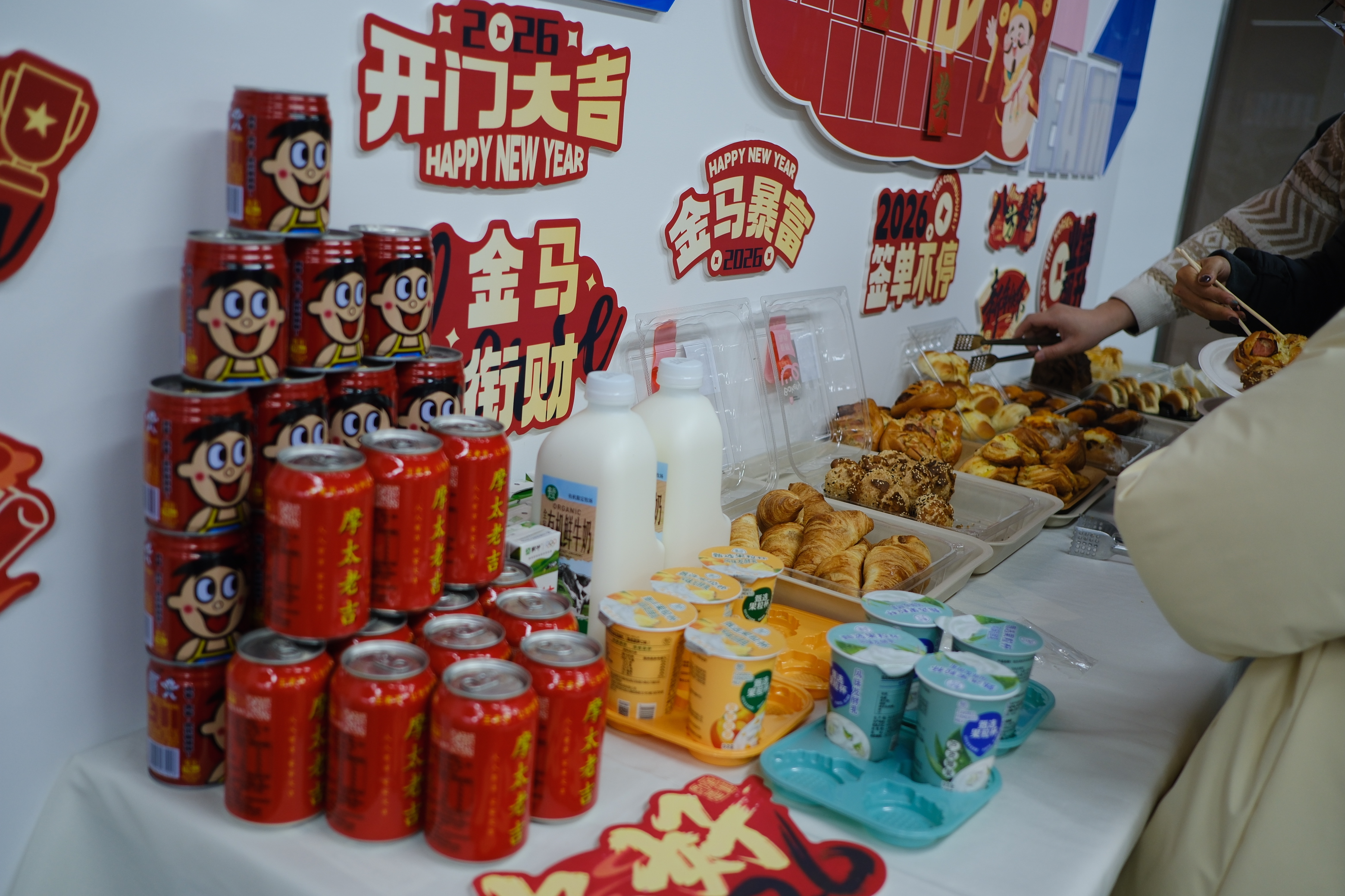 为呈现一场完美的开工盛宴,行政伙伴们早已提前筹备、精心布置。一走进摩太,满眼都是惊喜氛围感 ——精致蛋糕甜点、清爽饮料酸奶、清甜鲜切水果…… 一字排开。香气与甜蜜扑面而来,治愈又暖心,满满都是新气象的仪式感~